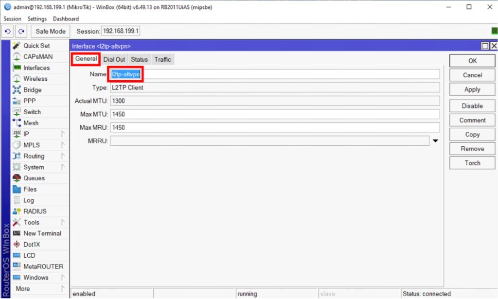 Открываем PPP -> Interface -> «+» -> L2TP Client