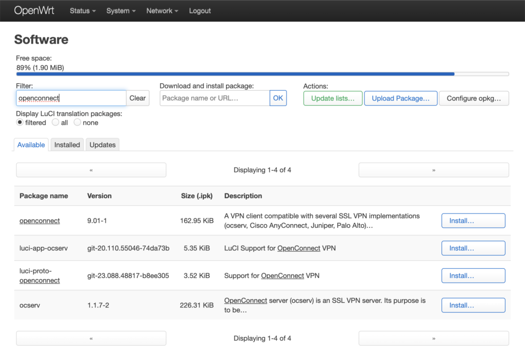 Перейдите в меню System → Software и выполните обновление списка пакетов